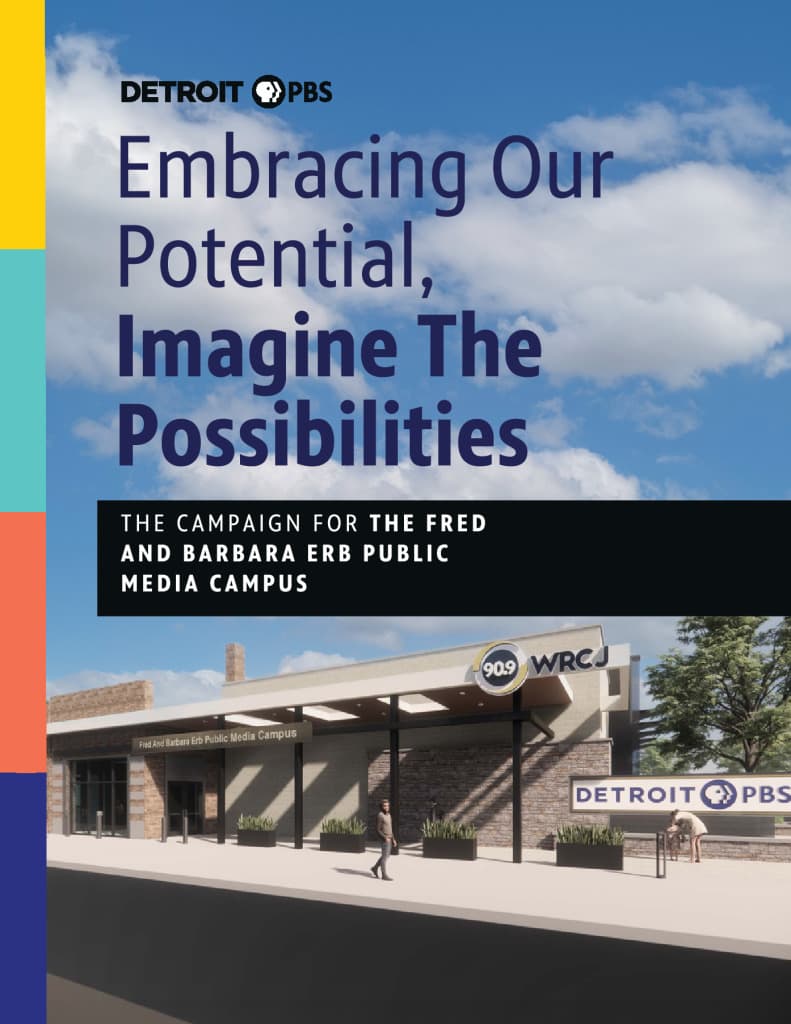 The Foundation’s commitment honors the legacy of Fred and Barbara Erb, their lifelong love of and commitment to Detroit PBS and 90.9 WRCJ, and shared values of sustainability, servant leadership and collaboration toward a just and civil society. Detroit PBS expects this exceptional gift will motivate others committed to philanthropy, from its audience, other foundations and the corporate community, to match the Foundation’s generosity over the next 36 months to help fund the new community media campus.